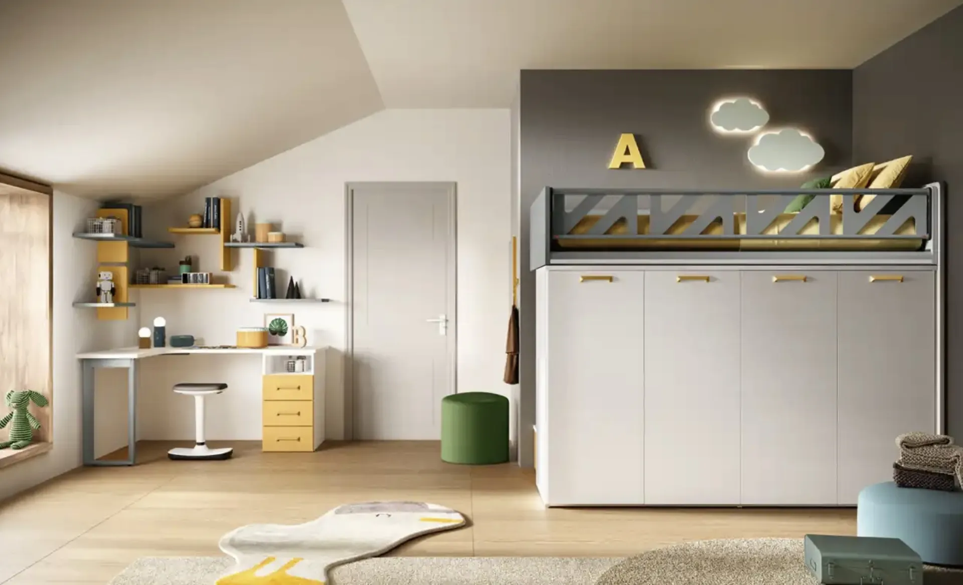 Le Camerette dei nostri figli sono l'ambiente dove passeranno i loro primi anni giocando e sognando, quindi è essenziale che lo spazio sia agevole. Con la Cameretta K109 di Moretti Compact Camerette in melaminico ti assicurerai un perfetto mix di funzionalità ed ergonomia, ideale per la stanza dei tuoi figli. Proponiamo nel nostro punto vendita svariate Camerette a soppalco moderne per bambini del brand, ideali per accompagnarli durante il loro sviluppo. I nostri bambini passano molte ore del giorno nelle loro camere da letto: rendile adatte per fare i compiti, giocare e dormire tutti i giorni.