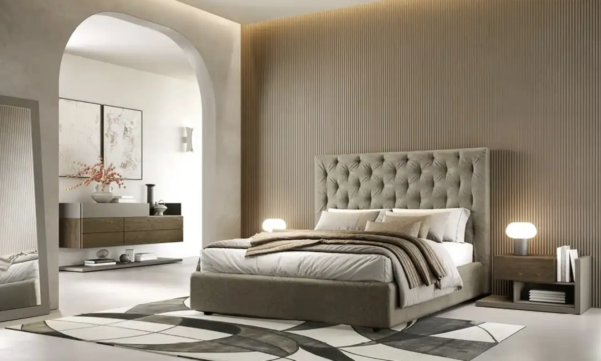 Scopri una ricca gamma di letti imbottiti dei migliori brand di Arredamento Casa disponibili nel nostro showroom e ottimizza la tua camera. La camera è lo spazio di casa che più interpreta il gusto di chi la utilizza, interno per eccellenza dedicato al relax, alla distensione e alla privacy. Se vuoi assicurarti il comfort più totale nei tuoi momenti di riposo, scegli i Letti matrimoniali design in ecopelle come il modello mostrato in foto. Nel nostro sito potrai trovare le soluzioni più valide dei migliori brand specializzati nell'arredo per la zona notte, con un’ampia possibilità di caratterizzazione in quanto a cromie e abbinamenti, elementi accessori e molto altro.