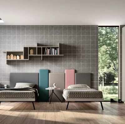 Con questa cameretta Camera a 2 letti Room115 Zg Mobili, tra le soluzioni componibili, potrai progettare stanze moderne per ragazzi.